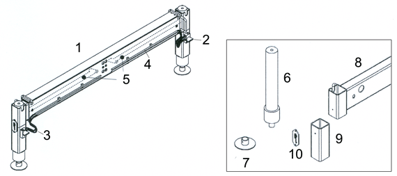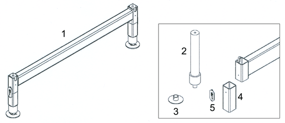 I martinetti possono essere regolati in altezza nella misura di 0 - 285 mm tramite taglio |